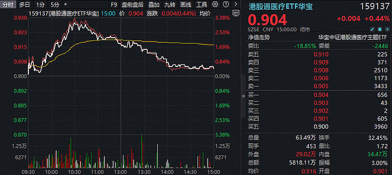 港股医疗核心资产——港股通医疗ETF华宝(159137)早盘一度摸高3.38%,最终收涨0.44%成功连阳。CXO及互联网医疗权重股力挺指数,金斯瑞生物科技涨3.74%,药明系集体收红,京东健康、阿里健康均收涨,平安好医生涨2.77%。