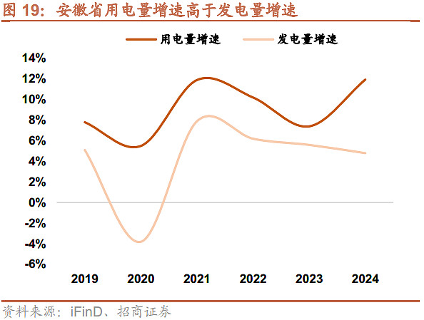 全社会用电量增速长期大于发电量的增速,只是从2025年开始发电量的增速才开始大于社会用电量的增速,后续需要关注安徽省的用电增速是否能够回升。