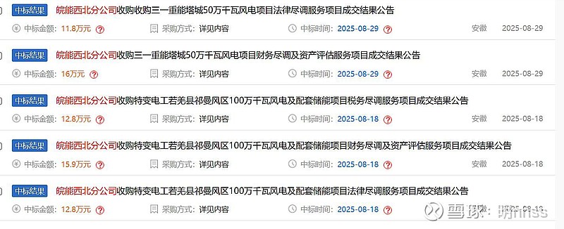 主要是2025年是十四五收关之年,皖能十四五的新能源装机计划是4GW,截止目前确定的新能源规模大概为新疆吐鲁番50万千瓦风电+新疆奇台80万千瓦光伏+新疆木垒100万千瓦风电+宿州30万千瓦风电+安徽本地原有大概20万千瓦的风光+储能=280万千瓦,离目标还差1.2GW,原来我个人预计的2025年收购集团新能源公司股权,解决同业竞争的事项估计2026年上半年都不会执行,主要原因还是集团公司手头的新能源项目盈利能力不达标。因此,个人判断在2025年12月31号前,皖能电力在新疆的新能源项目拓展还会有突破,具体项目为三一重能的塔城50万千瓦风电项目及特变电工的若羌100万千瓦风电项目。具体见贴图: