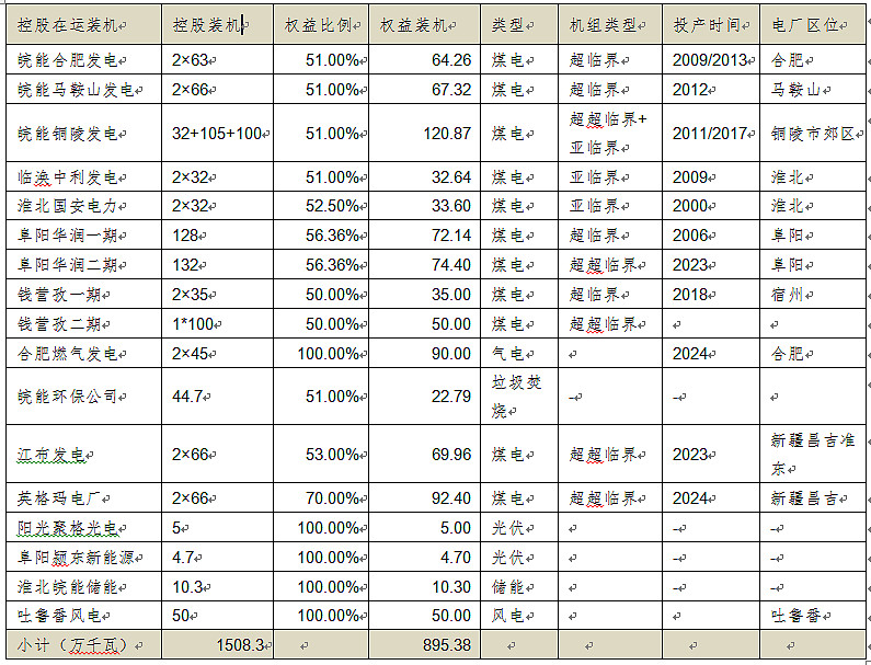 前面一堆不正经的分析,重新聚焦皖能电力,分析皖能电力的装机结构