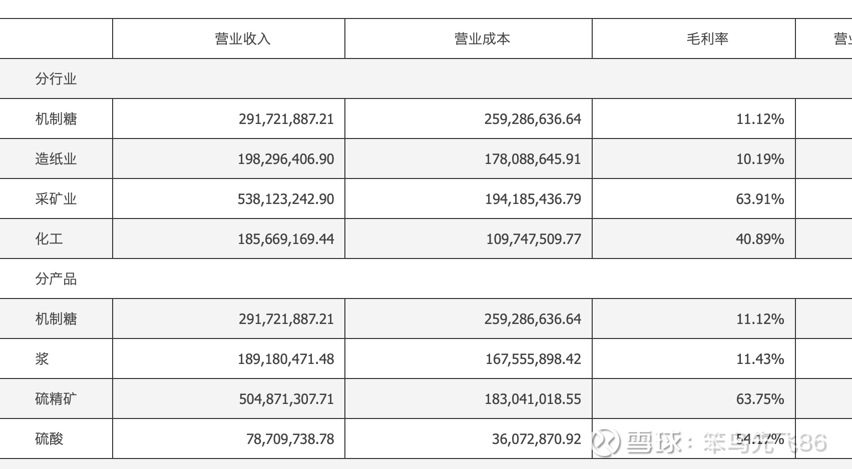 1. 贵糖集团:生成糖浆,纸浆和加工贸易,参考这几年财报说明,这元几乎是不赚钱的,甚至亏钱,所以这里基本忽略。