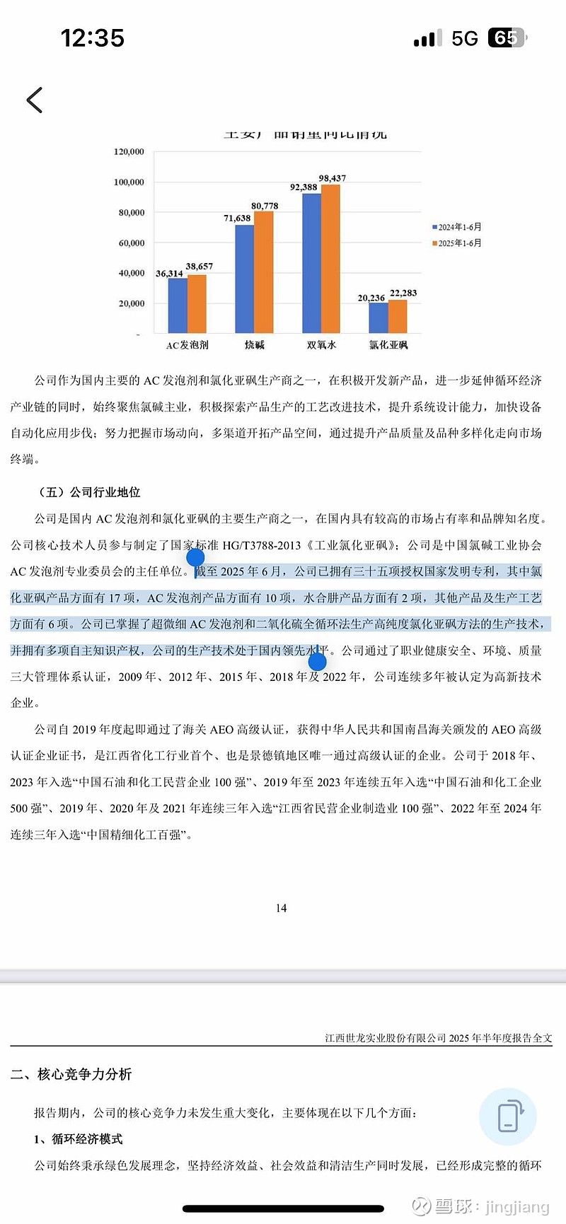 氯化亚砜价格还会继续高歌猛进,市场需求旺,占电池总成本低。世龙实业一直在不断优化提升电子级氯化亚砜生产工艺。目前公司国家发明专利35项,氯化亚砜就有17项目,它家的产品目前市场相对售价最高,相信这个产品26年会有不错的收益。另一个主导产品AC发泡剂也是国内主要供应商,产品毛利率随着行业景气度在回升。