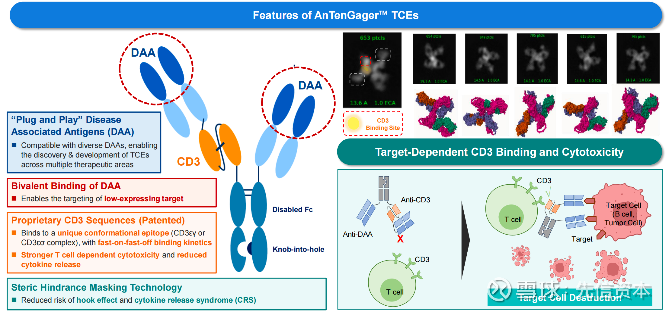 前言:AnTenGager是德琪自主开发的第二代TCE平台,采用二价结合DAA实现高亲和力,同时采用空间位阻遮蔽CD3实现良好的安全性。TCE作为接棒ADC/双抗的生物药热点,商业价值极高。目前,AnTenGager已孵化10条管线,仅ATG-201就有达成首付款超7亿美元授权的潜力,从现有市值看,相当于再造2个德琪,预期差拉满。
