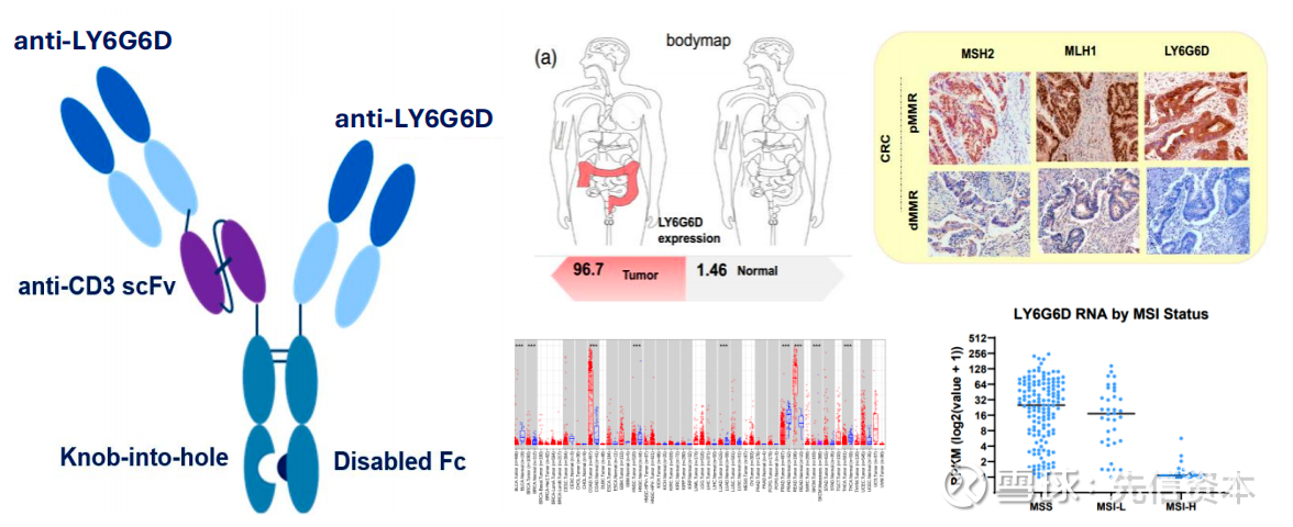 4. ATG-110(LY6G5DxCD3,计划27H1 IND):LY6G6D在正常组织中几乎不表达,而在对于IO不敏感的pMMR/MSS mCRC中高表达。pMMR/MSS mCRC在mCRC患者人群中占比超过90%,人群基数大。LY6G6DxCD3 TCE在研厂家较多,国外有罗氏、Cartography Biosciences,国内有齐鲁、东阳光药等。Cartography的CBI-1214是该领域的明星项目,计划在26年初启动I期临床。2025年10月,Cartography完成6700万美元B轮投资,由Pfizer Ventures领投。