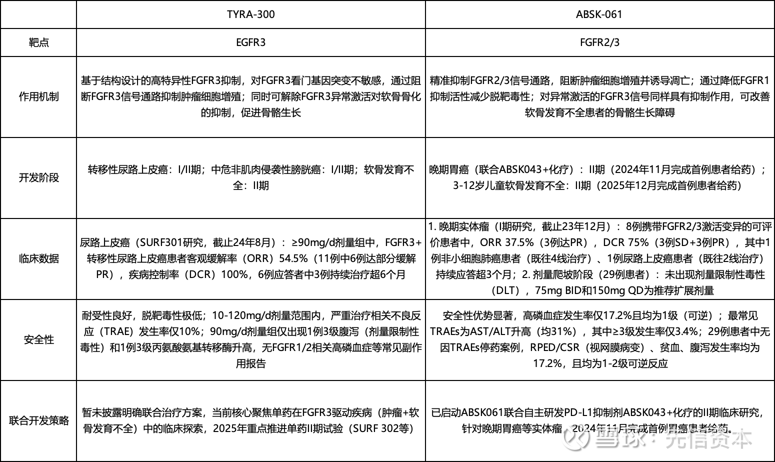 Tyra的TYRA-300是一种口服、高选择性小分子FGFR3抑制剂,在膀胱癌(IR-NMIBC)、尿路上皮癌、软骨发育不全领域具有颠覆性潜力,计划将在26H1读出IR-NMIBC首次II期数据,26H2读出ACH II期初步安全性和有效性数据。