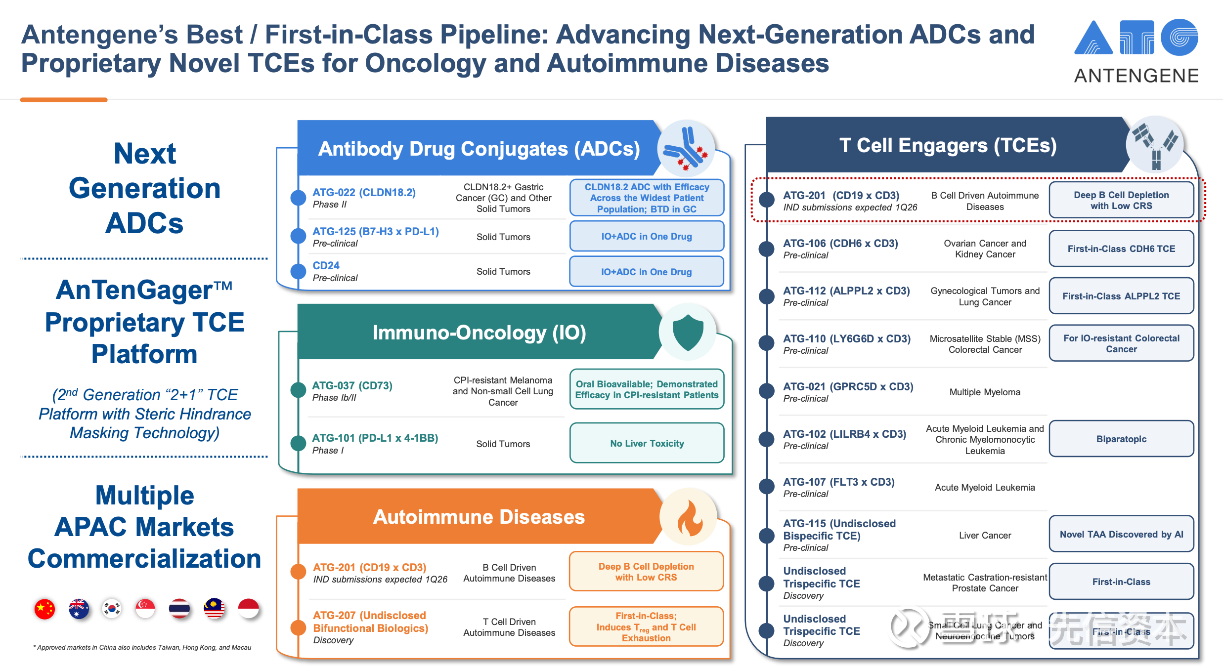 1. AnTenGager首个成功出海的产品,26年3月已授权UCB。BD合同为:6000万美元首付款+2000万美元近期里程碑+11亿美元里程碑付款(开发/商业里程碑)+销售分成。