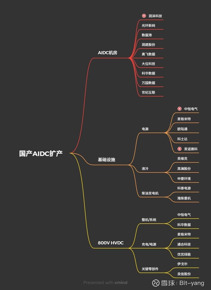 现阶段AIDC的供电架构主要是UPS,正在向800V HVDC演进,中恒绑定阿里腾讯字节等大厂,参与制定行业标准,800V方案已通过英伟达生态测试并获得认证,是国产链800V HVDC核心龙头,而麦米更多受益于海外链的AIDC扩产