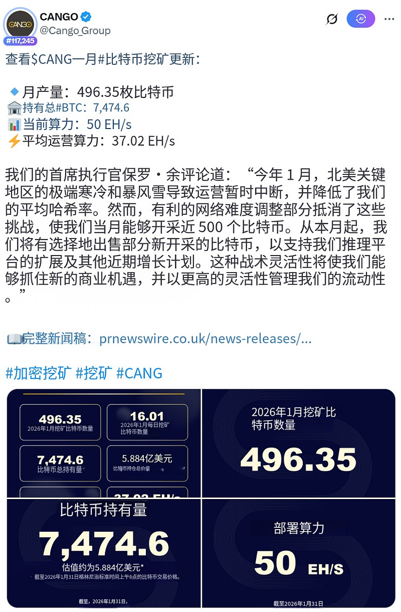 然后重点来了啊,灿谷的首席执行官说:“从本月起,我们将有选择地出售部分新开采的比特币,以支持我们推理平台的扩展及其他近期增长计划。这种战术灵活性将使我们能够抓住新的商业机遇,并以更高的灵活性管理我们的流动性。”
