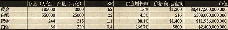 $日日煮(DDC)$ 我觉得日日煮长期储备大饼这件事情是没毛病的,当然前提是它能一直坚持下去,举个切入视角,黄金的 SF 是 62,白银的是 22。这是啥意思呢?就是说你要花 62 年的时间才能生产出和现在一样多的黄金,白银你需要花 22 年,铂金需要 0.4 年。我们就开始想,这些东西是不是因为稀缺,因此就成了货币?与之相反,铂金和钯金,它们的 SF 值是等于或少于 1,这就说明它们并没那么稀缺。事实的确如此,黄金比表里的其他金属保存价值都要强。