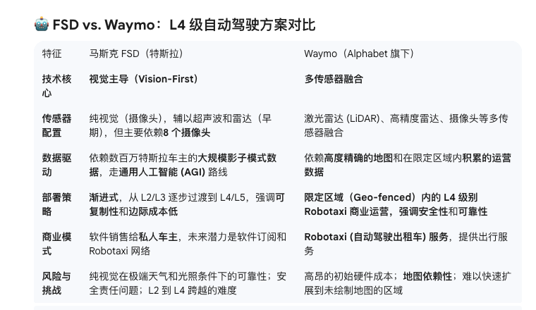 4. 我们再进一步就具体方案来说一下,为什么特斯拉这个方案的尾部可靠性到一定程度就很难继续突破了。先来看看FSD和waymo方案的差异