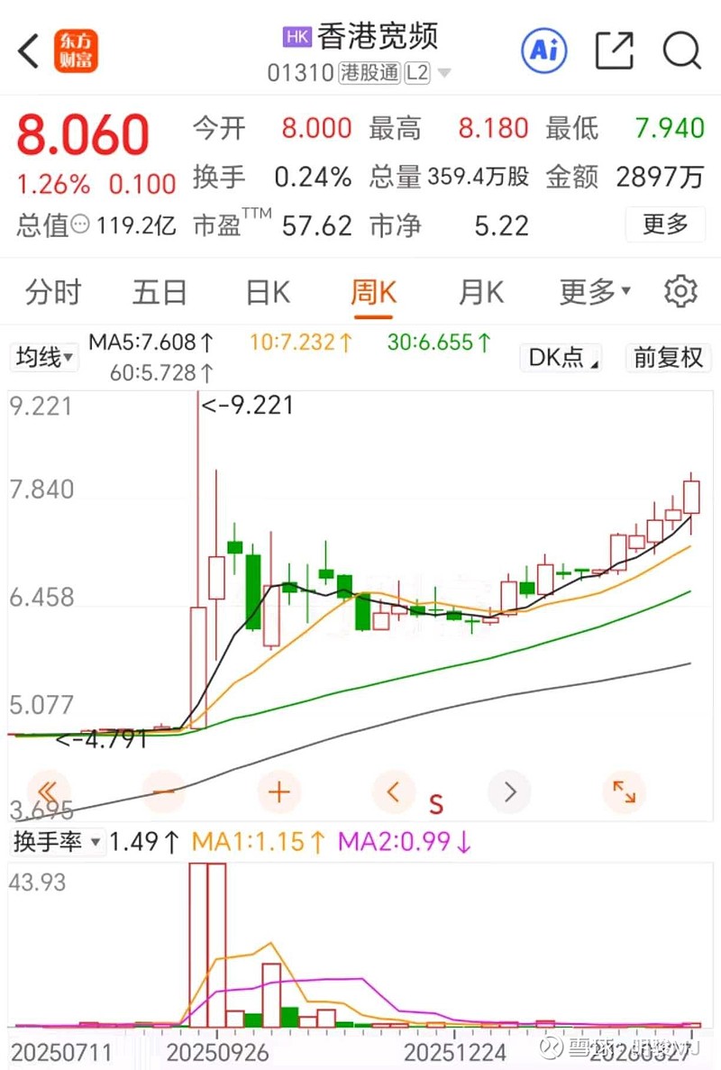 #香港宽频# 目前香港宽频的股价缓慢稳步上行,今天达到8港元,离1年目标股价10港元(见我去年11月7日的帖子:香港宽频的股息与股价)还有一定距离。耐心持股的球友应该都赚了20个点了,跑赢大部分球友。在股市中,慢就是快。以上$香港宽频(01310)$
