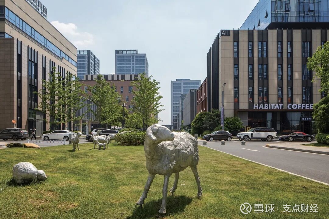 在合肥金融港闲庭信步的“羊群”是艺术家刘绍栋为园区量身打造的雕塑,赋予园区空间更多活力。