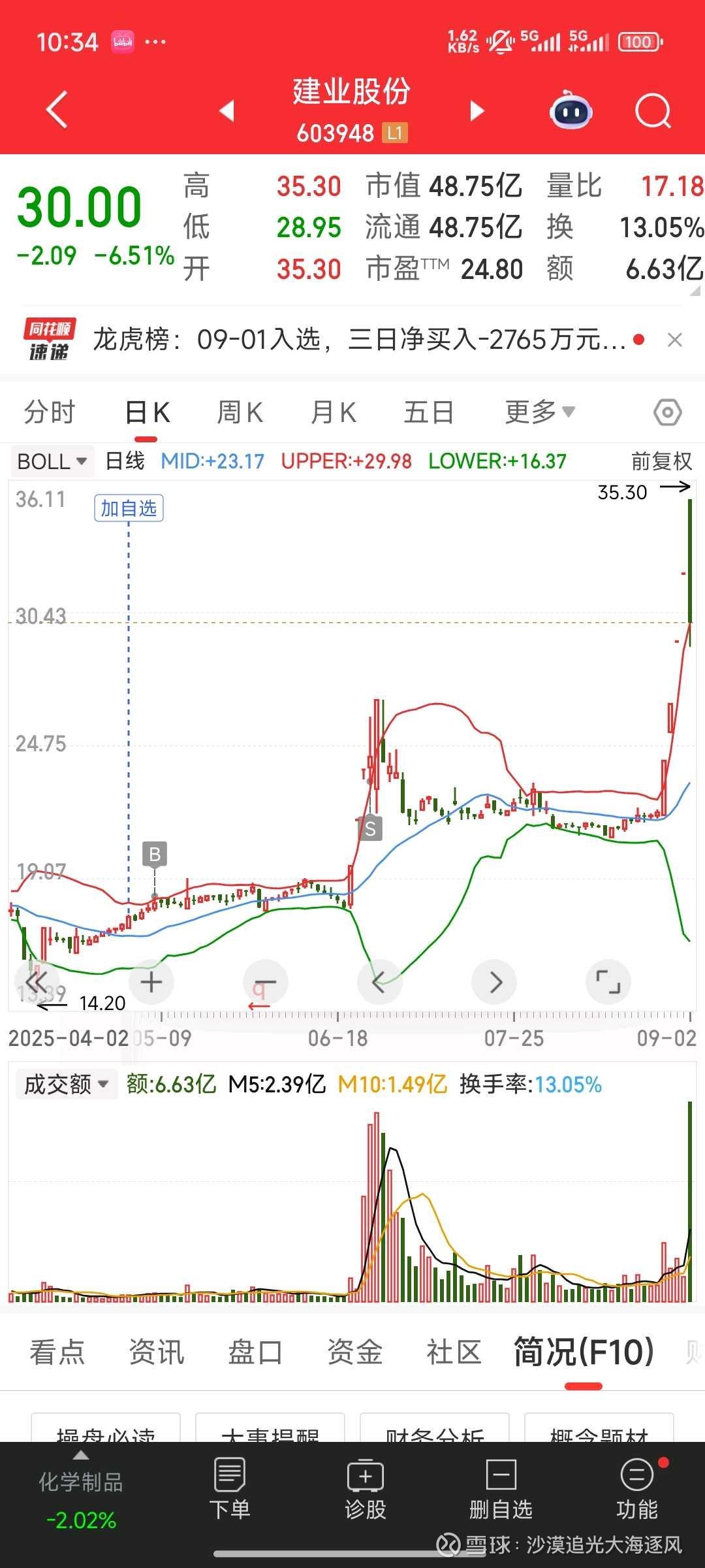回复@沙漠追光大海逐风: 这踏马建业股份又回到30了这炒的是啥啊有没有老师来指导下$建业股份(SH603948)$//@沙漠追光大海逐风:回复@沙漠追光大海逐风:其实建业股份这个股,还是不错的,不是纯粹的垃圾股,股息比较高的,分红比较大方,负债率比较低,行业竞争格局也不错,细分龙头之一,但大概因为行业周期,今年利润下滑的。也是自己老家的公司,买了没多久,就连板,后面卖了,想等20以下接回来的,没想到,继续板。$建业股份(SH603948)$也都是运气,就看风来不来 查看图片