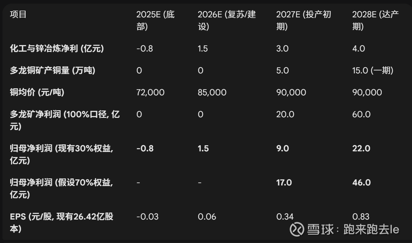 注:2028年预测基于多龙一期达产15万吨/年(总规划30万吨分期实施)的保守估计。铜完全成本假设为45,000元/吨。