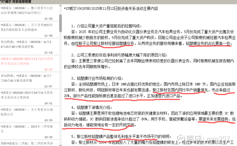 1. 摘帽核心条件近乎达成:它因2024年净利润为负且扣非后营收低于3亿元被*ST。2025年公司完成重大资产重组,9月末拿下铝塑膜龙头紫江新材51%股权,还置出了亏损的仪器仪表业务。