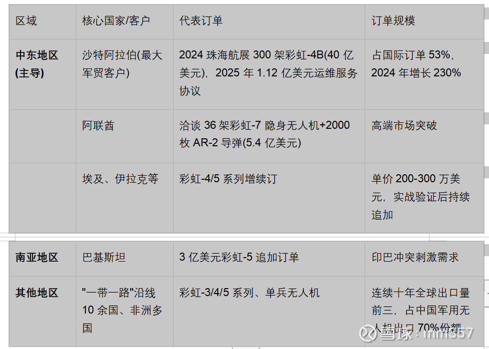 • 技术转让与生产线合作:如沙特引进彩虹-4无人机生产线