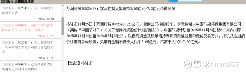 万润股份(002643)2025年11月25日发布公告,实控人“中国节能”拟在6个月内增持股票3.65~7.3亿元。