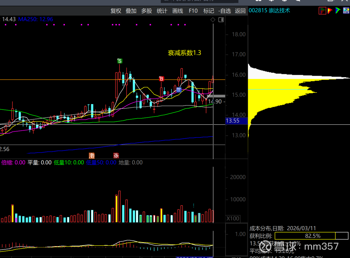 1、筹码集中度高,已形成顶个筹码峰,当前价格刚刚越过主力成本均线;