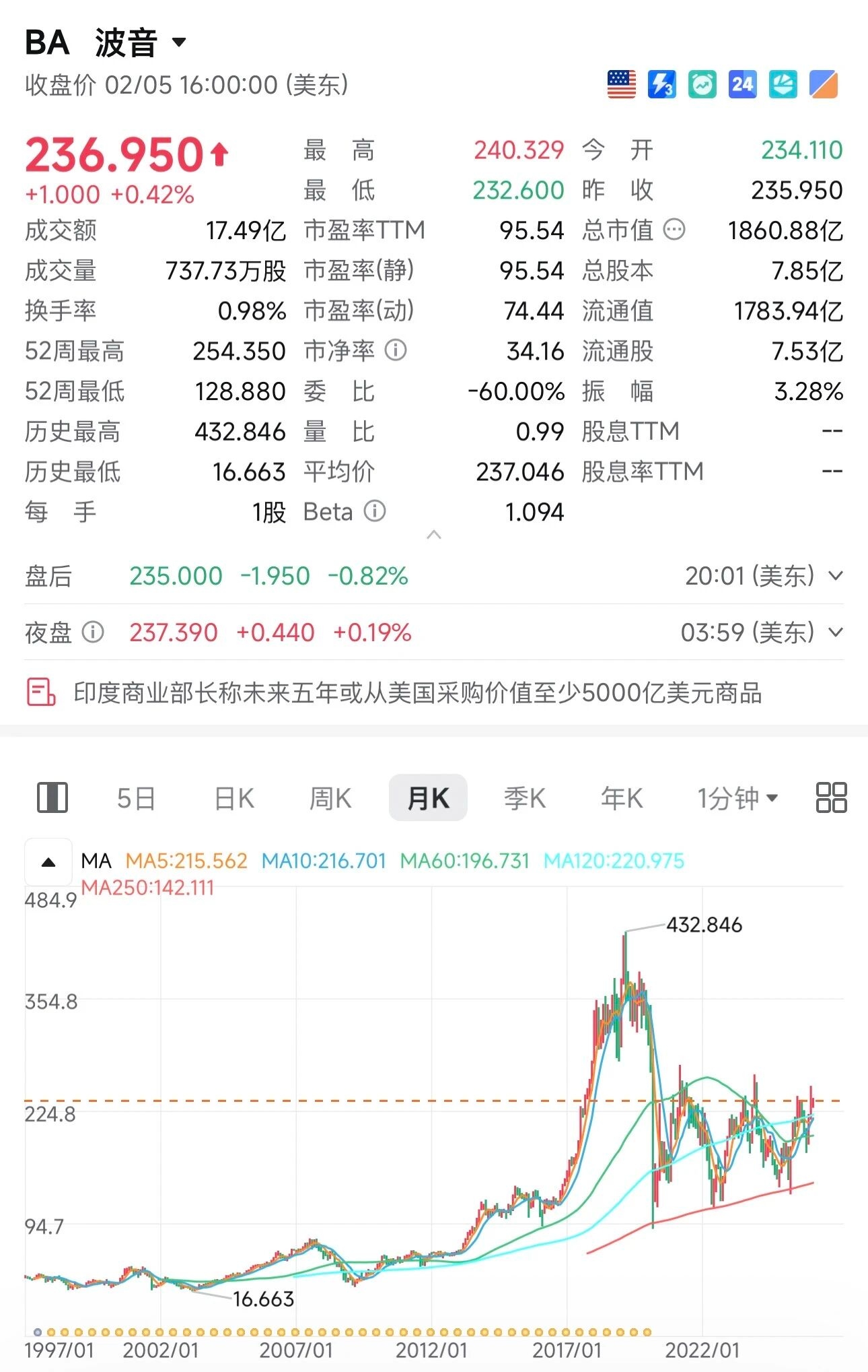 更重要的是,波音卖的并不只是飞机,而是不可替代性,是全球民用大飞机寡头结构中的一极,是深度绑定国家安全和军工体系的关键节点。在资本市场里,“不会被允许失败”本身就是一种定价优势。