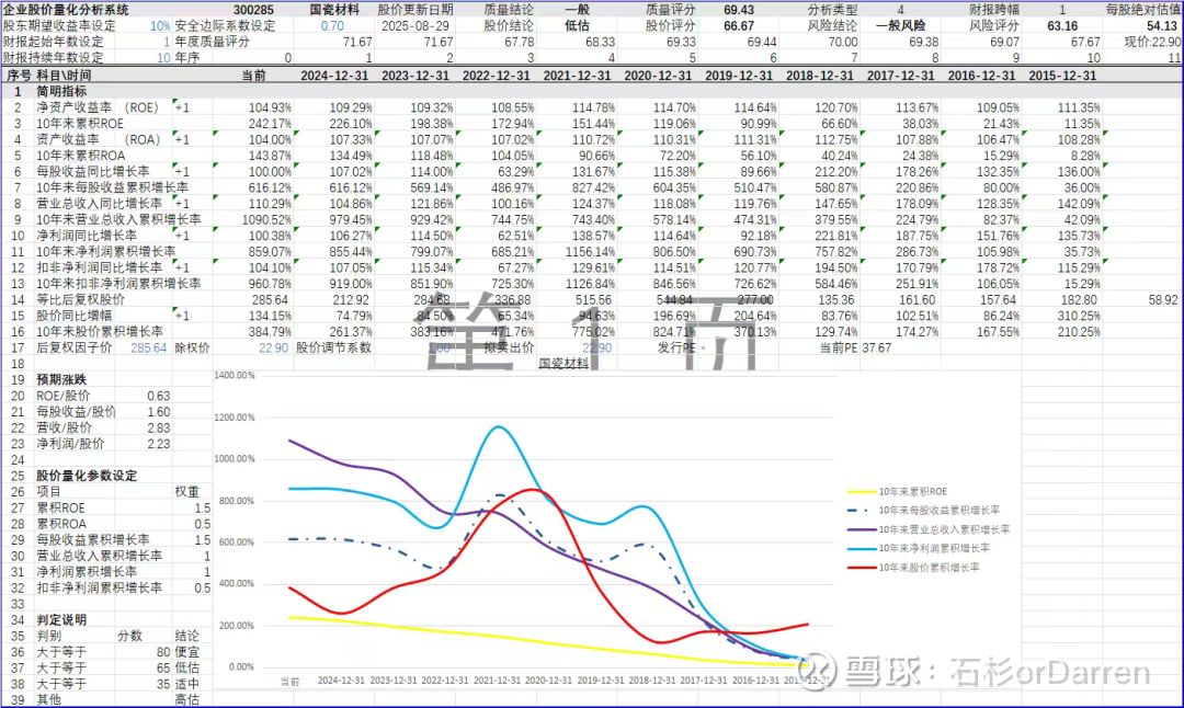 从上图可以看出,股价结论为“低估”,评分66.67;质量结论为“一般”,评分69.43;风险结论为“一般”,评分69.16,都还不错。10年来股价的涨幅低于每股收益、净利润,营收的累计增幅,仅高于ROE的累计增幅。