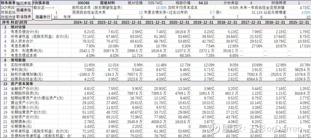 如上图,把预期收益率设定为年化10%,安全边际设定为0.7,永续增长率设定为4%,则公司的估价为54.13元。或者说,只要在54.13元以下买入,在公司发展逻辑不变的情况下,未来大概率可获得10%以上的年化收益率。