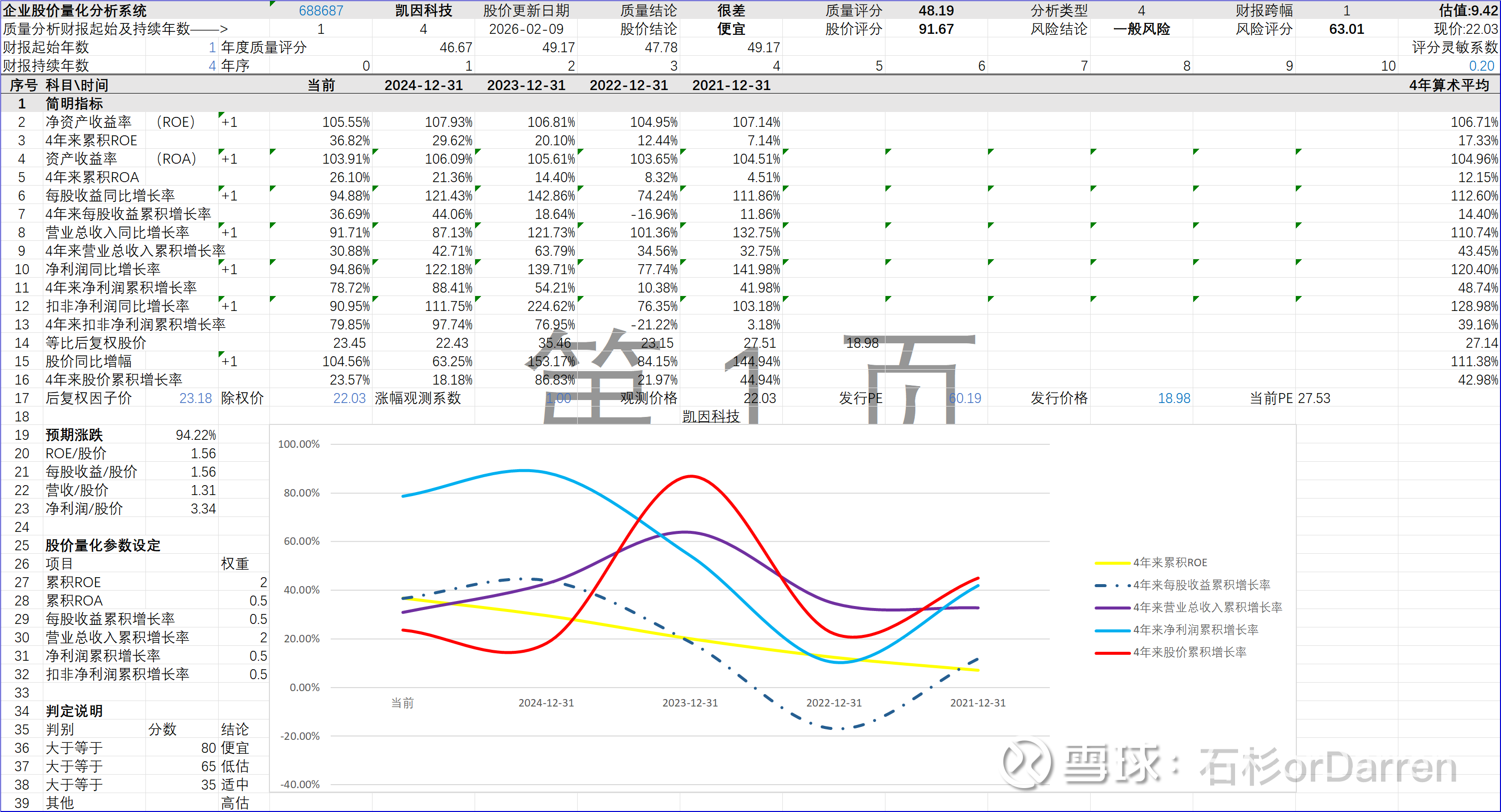 2、质量分析。48.19分,不及格,在医药行业算中等偏下,但比还未盈利的纯创新药公司要好一些。制药公司评分都不高,即使巅峰时期(2020年之前)的恒瑞医药评分也就60多,这主要是因为研发费用太高等诸多因商业模式而导致的财务问题。