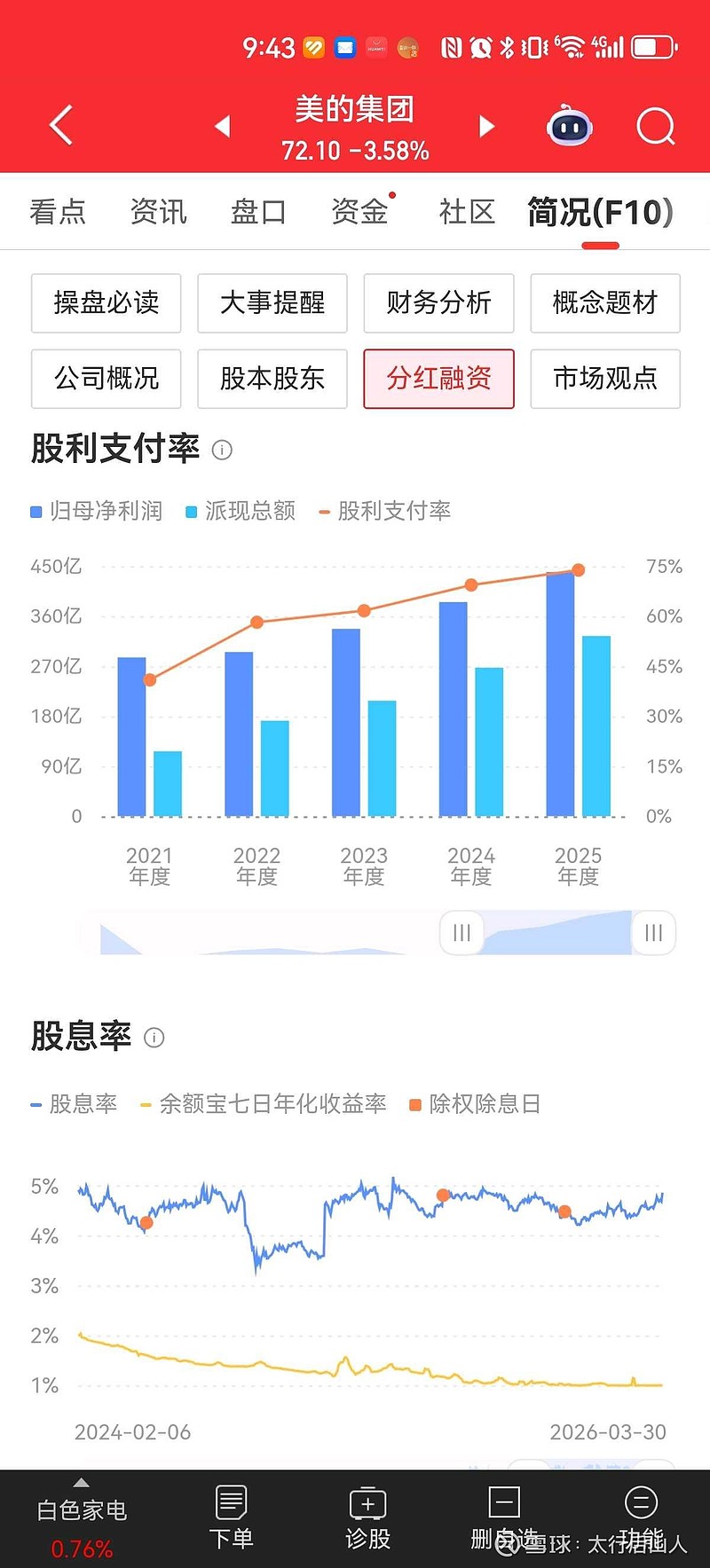 不说美的集团这个年报牛不牛。单纯分红和回购角度看,确实很牛了。分红比例和金额都在持续增长。2025年每股分红比24年多了0.8元,同比增长了23%,这还要啥自行车,自己持仓分红多了4000来元。这就是好公司分红回购的力量,也是价值投资的典范!