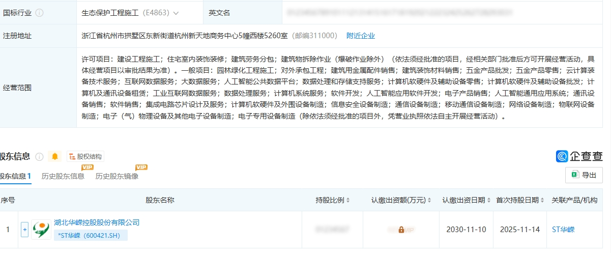 9.最新彩蛋:据天眼查资料,华嵘11月16新增对外投资企业"浙江鸿济生态建设有限公司",认缴出资5168万元。而浙江鸿济公司14日刚刚变更营业范围,增加了"云计算、大数据、人工智能",想像力巨大不禁令人热血澎湃!这种公司符合公司主营业务,一般12月份都会增加大额营收,没准营收保壳,双重保险,利润200万,一下子搞定(见下图)