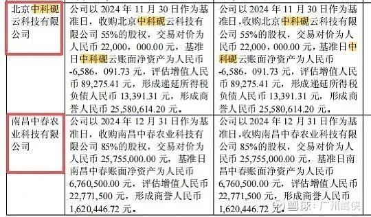 3.中科砚云,花2200万元收购55%股权,25年预测营收是8900万元,业绩对赌是不低于1.5亿元。中春农业,花2577万元收购85%股权(这个作为隐藏福利吧,我不知道他的收入是多少,所以先不确认)