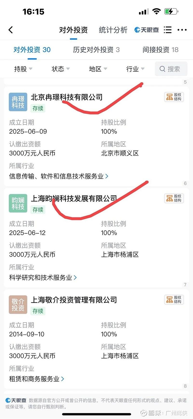 4.成立新公司,实控权换成北京欣欣合伙后,公司成立了8家科技类新公司