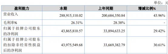 公司在全国股转系统披露的2025年半年报显示,公司2025年上半年营收同比增长43.96%,扣非归母净利润同比增长30.61%。