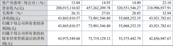 2022年、2023年、2024年,公司实现营业收入分别为2.190亿元、3.206亿元、4.573亿元,扣非归母净利润分别为0.429亿元、0.554亿元、0.737亿元。