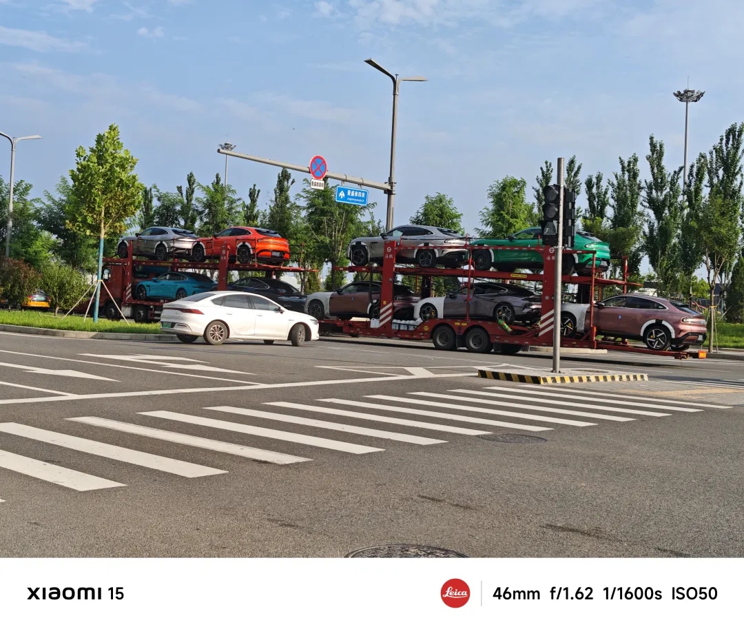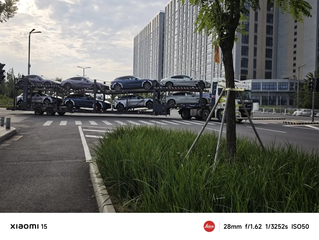 (满载着SU7和YU7 的板车从北门开出)