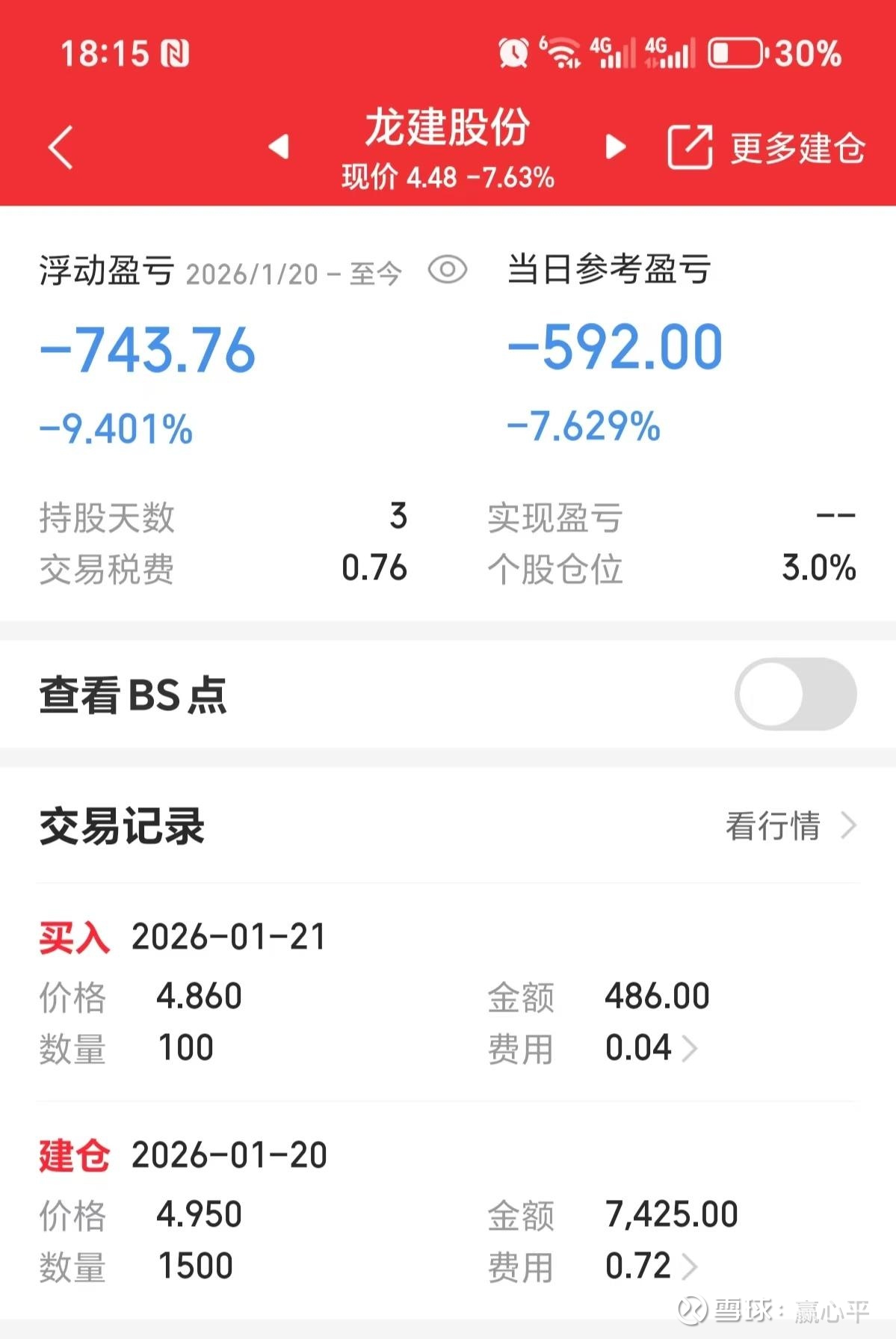 1月21日,本想龙建股份涨了,就卖出一半,锁定利润,以便22日配债后安全离开。