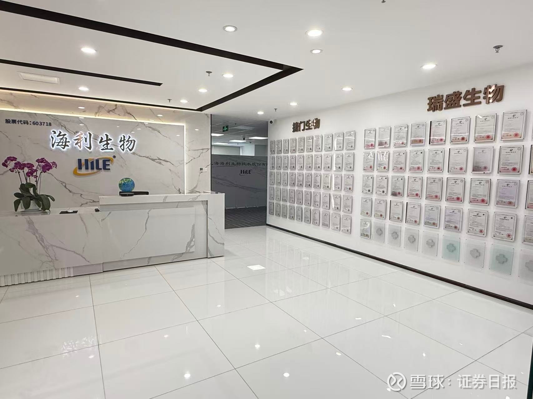 海利生物的总部位于上海黄浦区淮海中路的某写字楼八楼。记者在现场看到,海利生物的办公室外墙上挂满了各类专利。该公司的董事兼总经理韩本毅、董事会秘书浦冬婵接受了《证券日报》记者的采访。