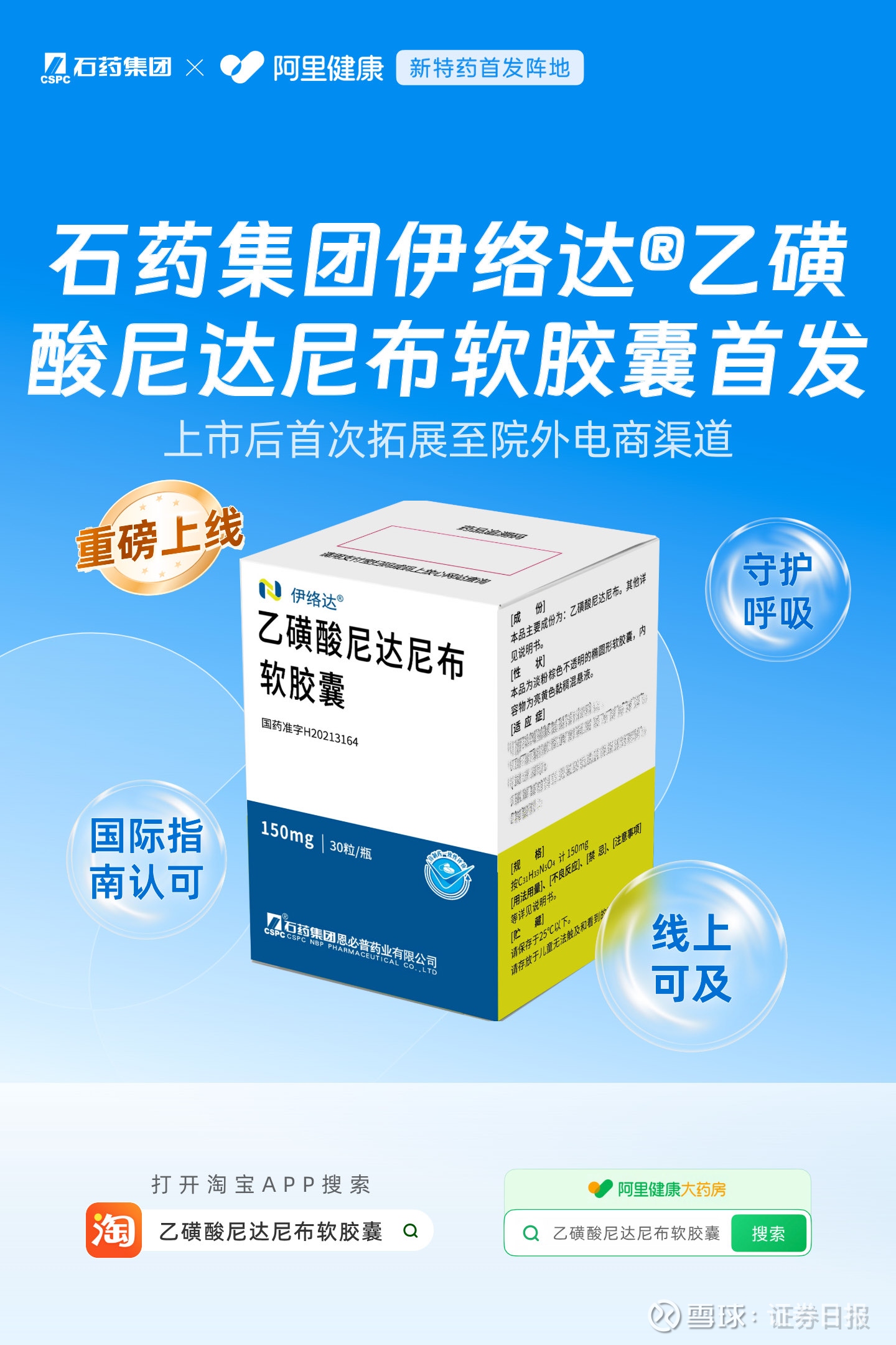 伊络达®乙磺酸尼达尼布软胶囊是石药集团在呼吸疾病领域布局的核心产品之一,自上市后迅速惠及大量患者,首次在电商平台上线,是石药集团拥抱“互联网+医疗健康”新业态、深化患者服务的关键一步。针对伊络达®这类需长期用药的产品,阿里健康作为“新特药首发阵地”将通过全周期慢病管理体系、便捷配送网络等组合服务,切实提升患者的治疗依从性。平台致力于成为药企的数字化肩膀,让每一款新特药不仅有首发的高度,更有可及的温度。