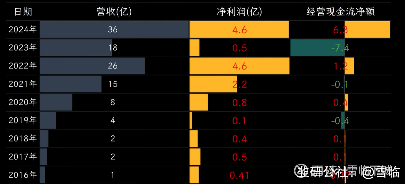 公司的财务情况。2024年,长川科技实现营收36.4亿元,同比增长了105%,主要受益于行业复苏和国产替代加速,归母净利润4.6亿元,同比激增915%,经营现金流净额6.3亿元,同比由负转正,主要因销售回款增加,现金流状况大幅改善。