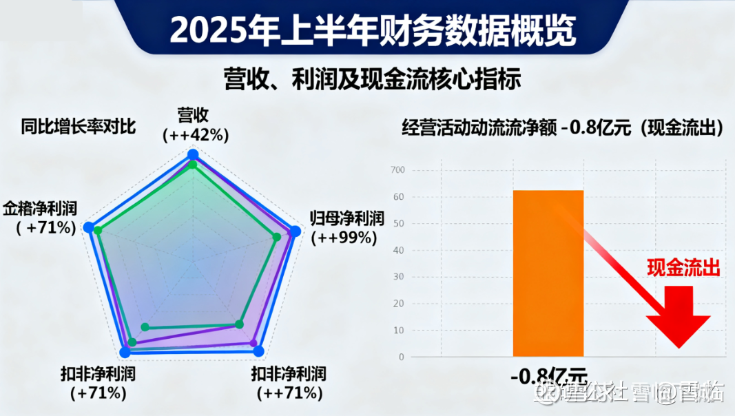 公告显示,公司上半年营业收入约为21.7亿元,较上年同期增长42%。盈利方面表现尤为亮眼,归属于上市公司股东的净利润达到4.3亿元,同比增长了99%,接近翻倍。扣非净利润为3.6亿元,同比也增长71%。不过,值得注意的是本期经营活动产生的现金流量净额为负值,流出了8000万元,现金流状况还是不够理想。