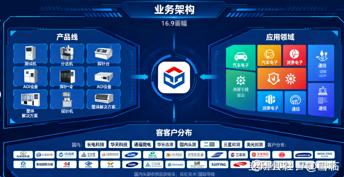 长川科技逐步形成了覆盖测试机、分选机、探针台和AOI设备的全产品线布局,成为国内少数能够提供集成电路测试设备整体解决方案的企业之一。公司的产品广泛应用于汽车电子、消费电子、通信等多个领域,