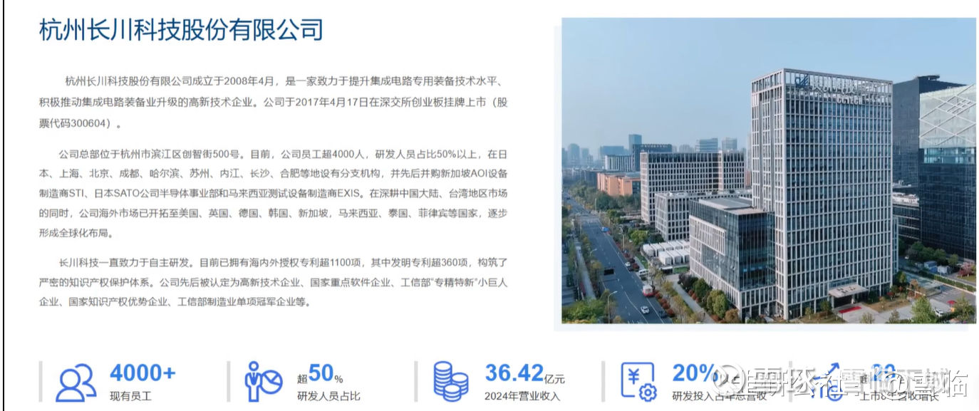 全称叫做杭州长川科技股份有限公司,注册地在浙江省的杭州市,股票2017年在深交所上市公司的控股股东是赵毅,实际控制人是徐昕和赵奕,组织形式属于大型民企。
