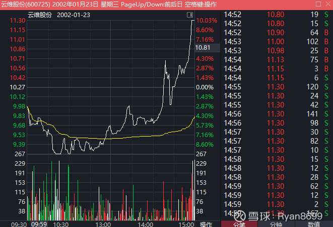 这是$云维股份(SH600725)$ 2002.1.23前后一段的K线图: