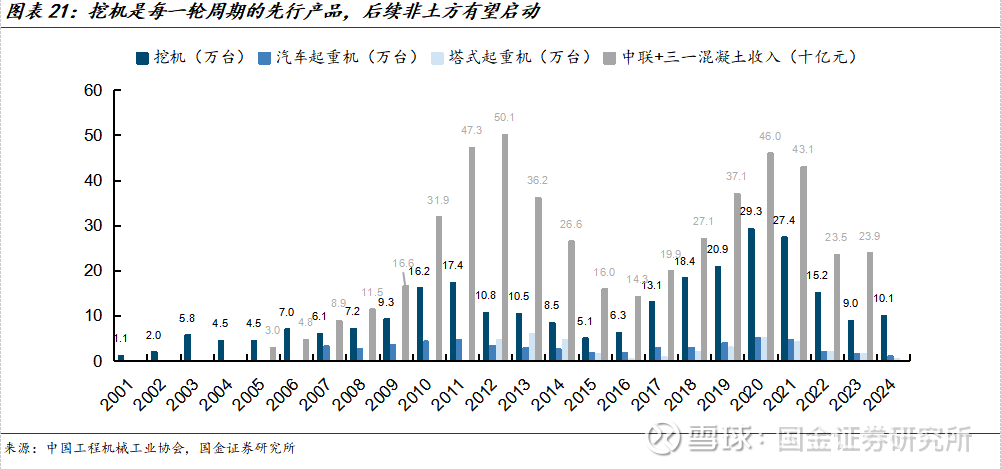 从开工节奏来看,25年下半年非土方有望逐步开启上行。根据历史周期,挖机需求每轮最先启动,起重机、混凝土板块会在后续2年进入上行。行业挖机内销从24年3月出现拐点向上,目前已实现近1年半的正增长,非挖板块有望逐步开启上行。