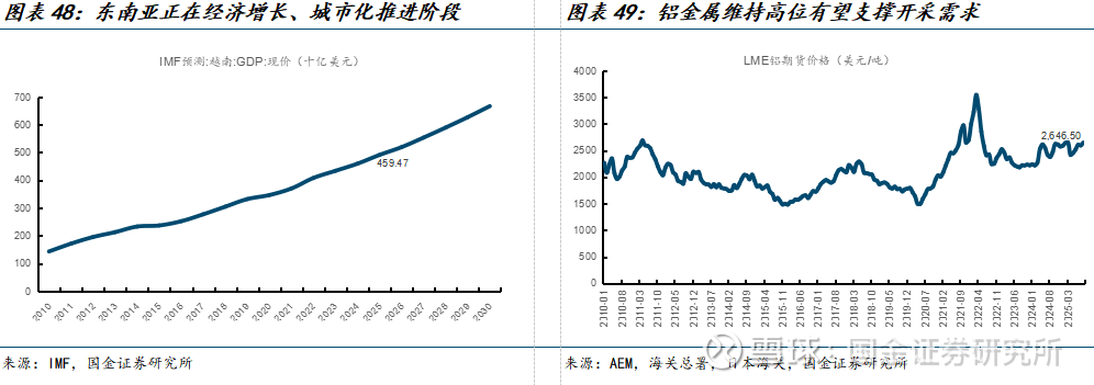 城镇化、资源开采、基建三板斧有望持续拉动东南亚工程机械需求。1)城镇化:2023年东南亚五国平均城镇化率为55.7%,与2014年的中国相当;而中国2023年城镇化率为66.2%,比东南亚五国的平均水平高出10%,中长期看,东南亚城镇化有望继续推进,带动工程机械需求;2)资源品开采:铝等资源品价格维持高位,也将继续催化下游开采对工程机械的需求;3)基建政策:印尼迁都工程在24年开始逐步建设、搬迁,迁都带来的基建需求释放有望拉动工程机械需求。