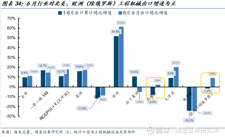 3.2.2工程机械出口加速,北美、欧洲地区出口改善