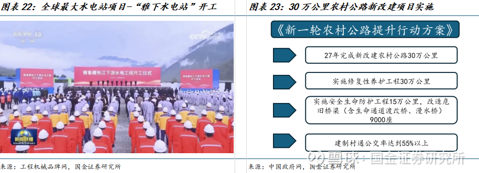 30万公里农村公路新改建项目也将拉动工程机械需求。25年8月交通部等多部分印发《新一轮农村公路提升行动方案》,到2027年,全国完成新改建农村公路30万公里,有望拉动工程机械需求。