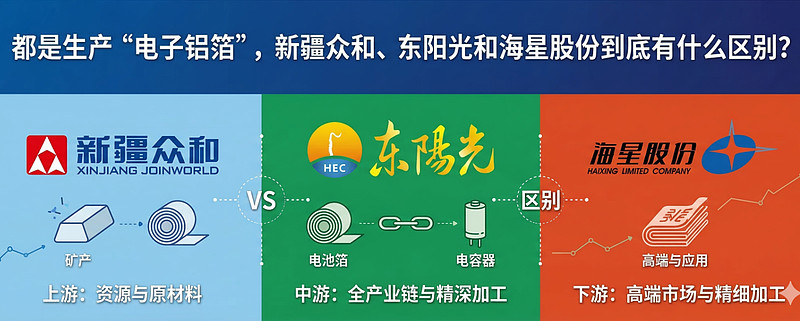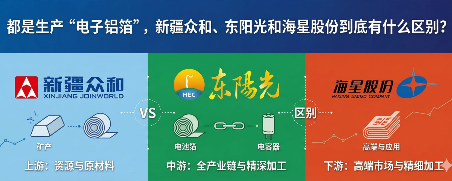 这三家公司(新疆众和、东阳光、海星股份)在铝基电子材料领域确实属于同行业公司,且互为竞争对手或上下游关系,但它们的产业链侧重点和具体生产的产品范围有明显的区别。