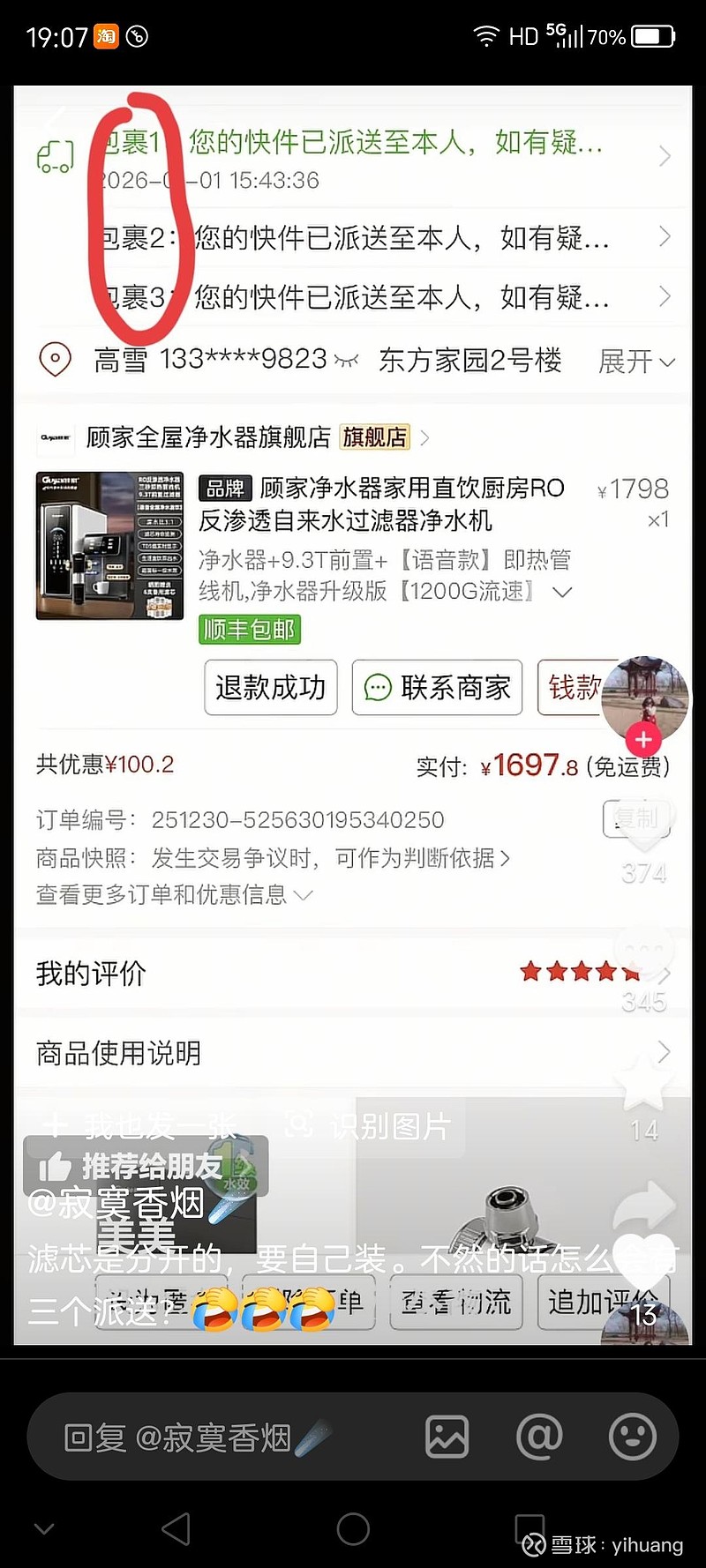 最关键的是这位消费者的认识,把这次不好的购物体验归咎于便宜没好货,可这是1697元的净水器,虽然是个杂牌顾家的,但已经比同样1200G流量的小米、美的等大品牌还要贵了。因为拼多多之前建立的低价心智,让消费者还以为这是个便宜货。