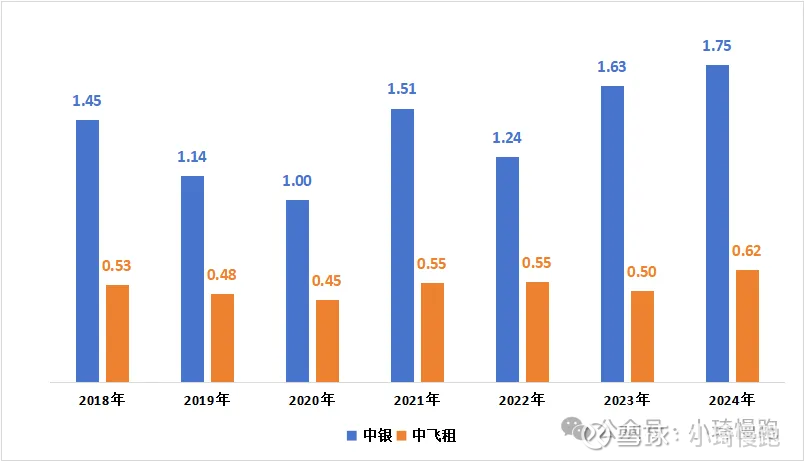1.其他成本规模:2024年中银其他成本达1.75亿美元(较2019年增0.61亿),中飞租为0.62亿美元(增0.14亿),中银成本规模为中飞租2.8倍。