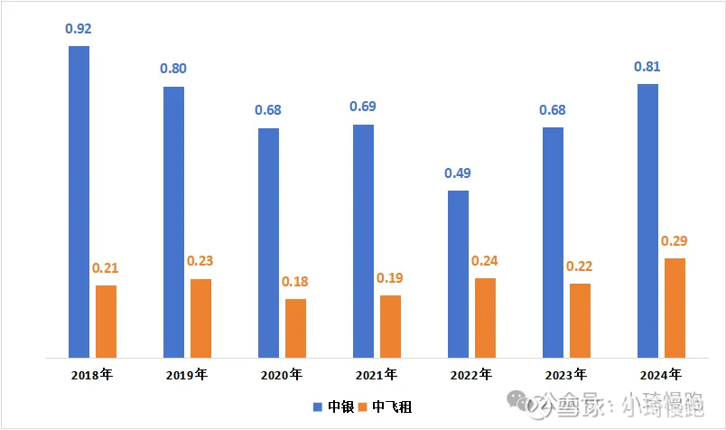 成本规模悬殊:中银在其他成本总额、人工成本、技术服务费三大维度均大幅领先中飞租(分别达后者2.8倍、2.6倍、2.5倍),与中银飞机资产及人均创造利润相匹配。
