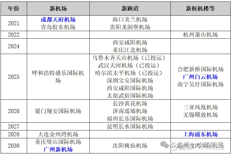 数据来源:根据媒体公开信息整理,其中蓝色字体为核心一线机场。